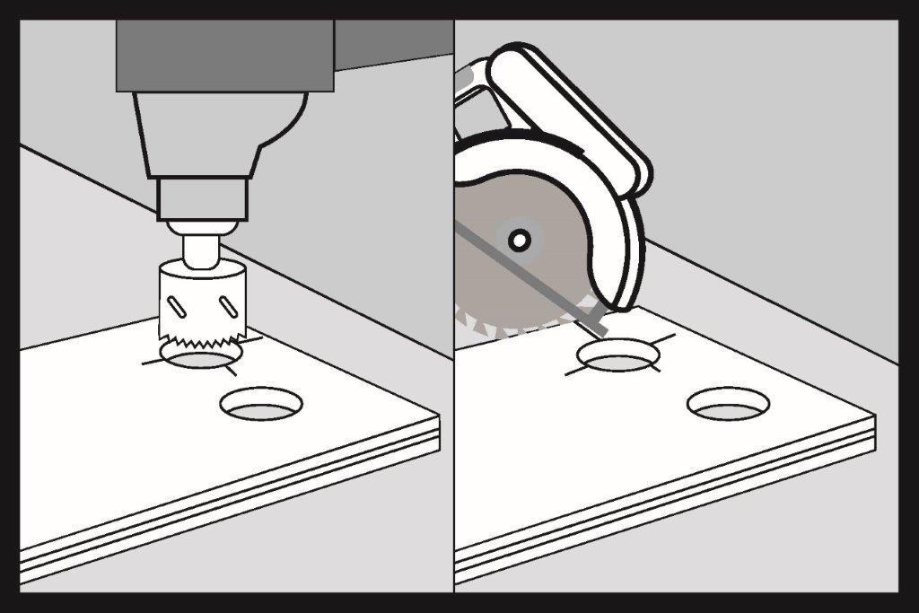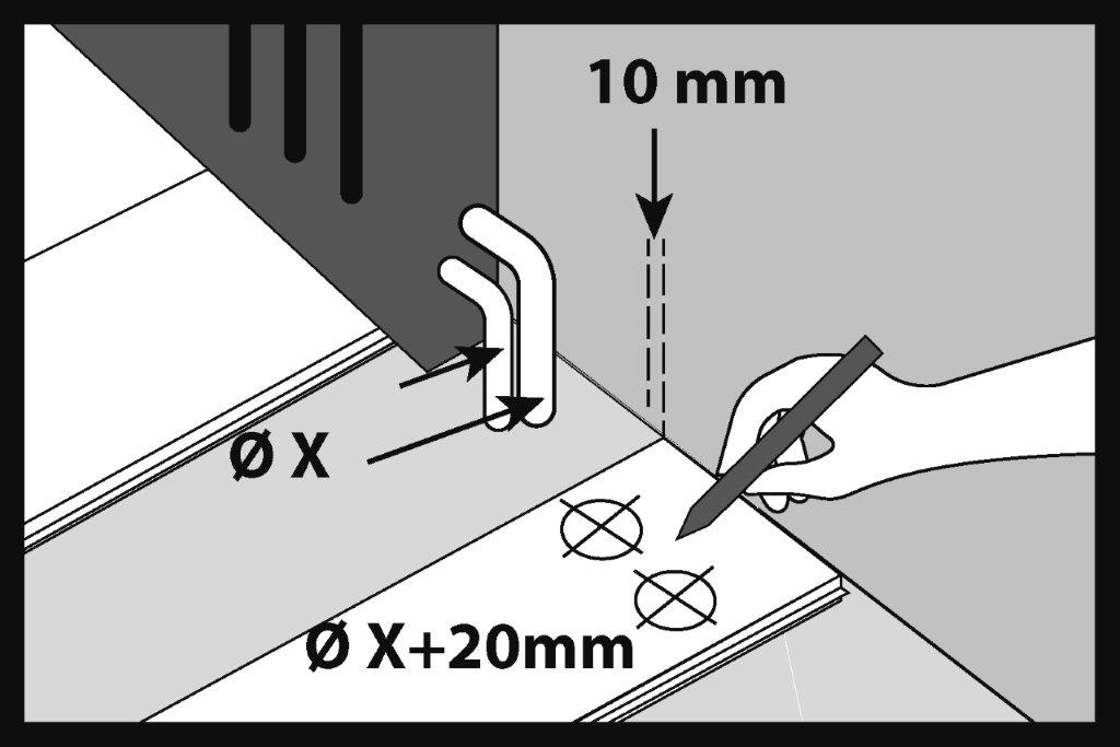 Per installazione intorno ai tubi dei radiatori, traccia sul pannello SPC dei fori di diametro maggiore di 20 mm.