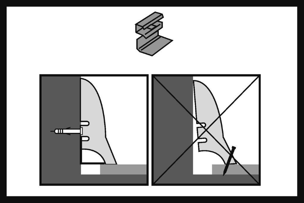 Dopo aver installato l’intera superficie del pavimento, installa i battiscopa decorativi. I battiscopa vanno fissati solo ed esclusivamente alle pareti con clip di fissaggio o adesivo da montaggio.