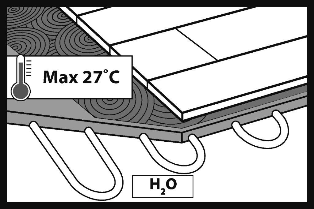Il sistema di riscaldamento a pavimento dovrebbe essere protetto da un abbassamento della temperatura dell’acqua nell’impianto al di sotto di +18°C.