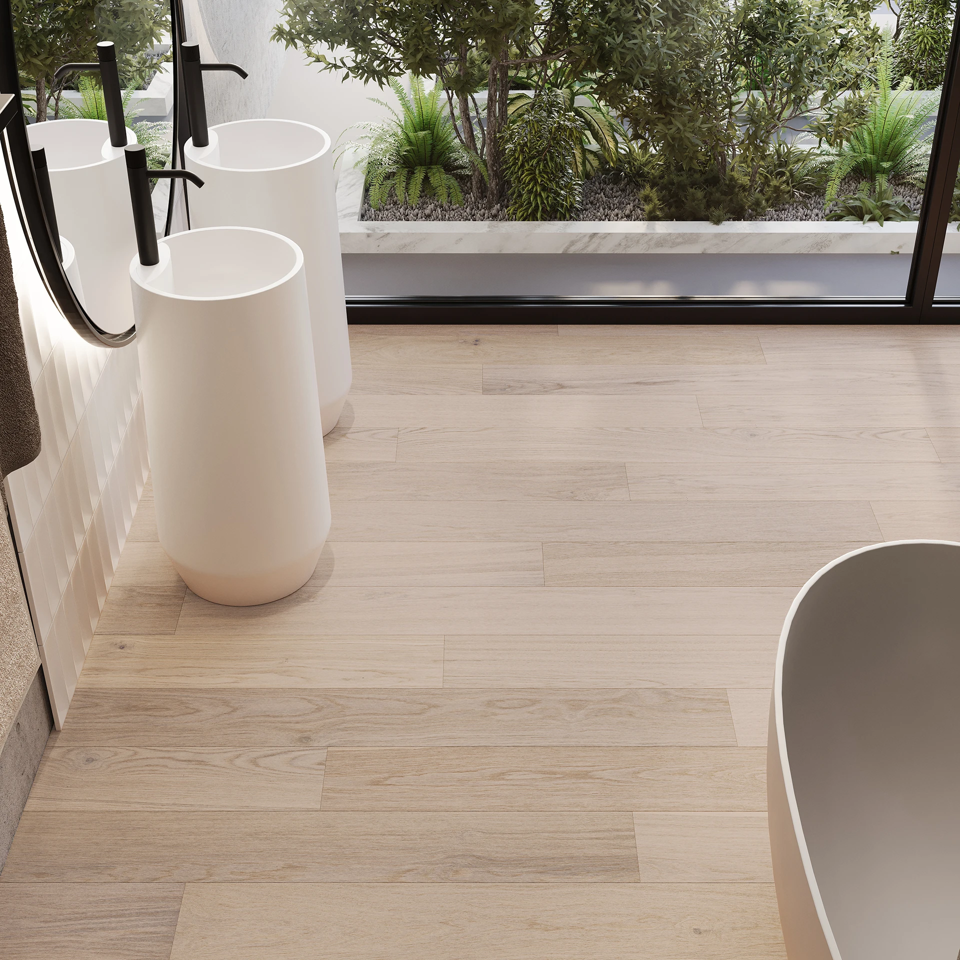 Parquet in rovere sbiancato che unisce durabilità e stile senza tempo. Le tavole spazzolate mettono in evidenza la struttura naturale del legno, conferendo alla superficie profondità e un carattere unico.